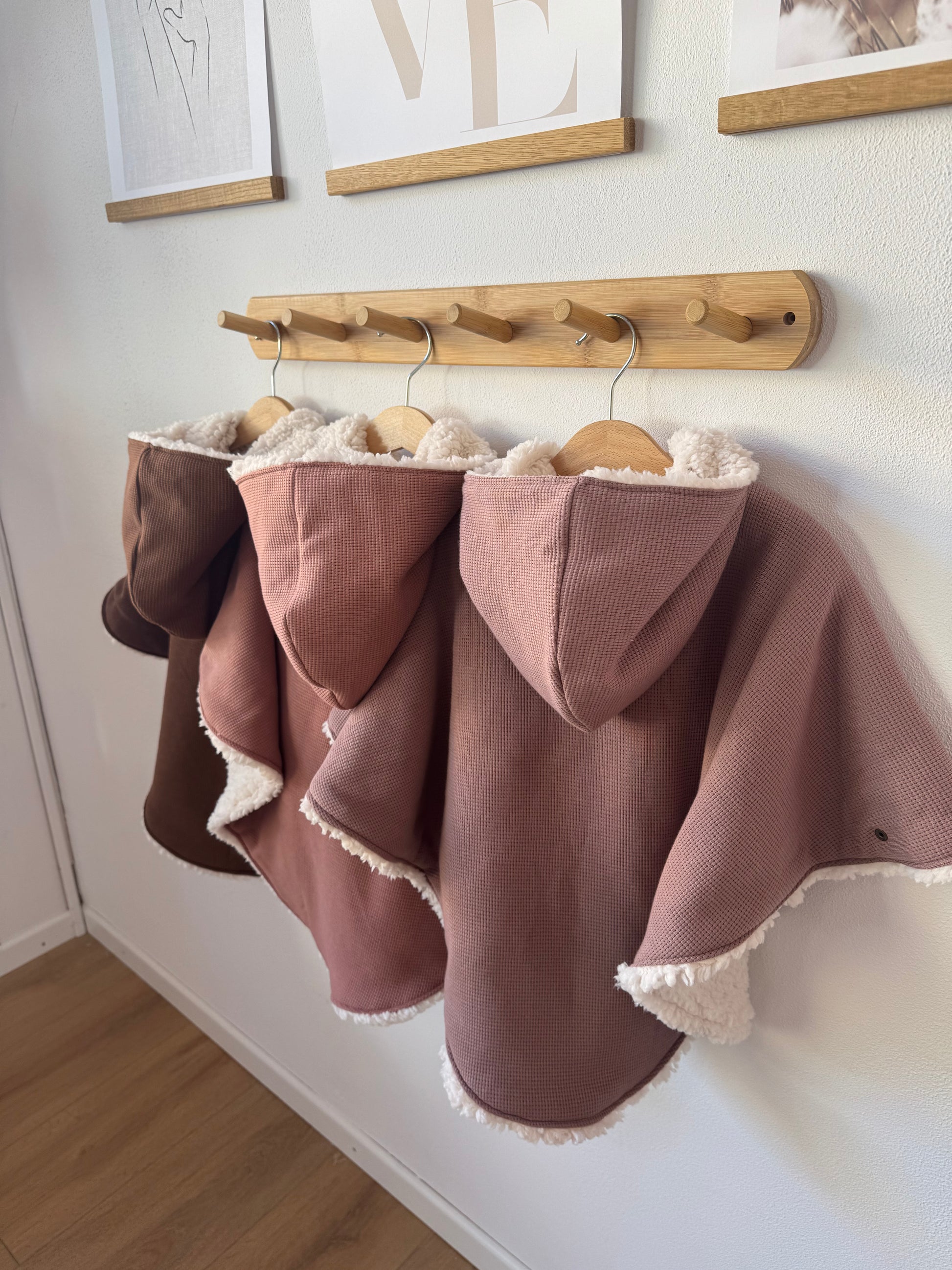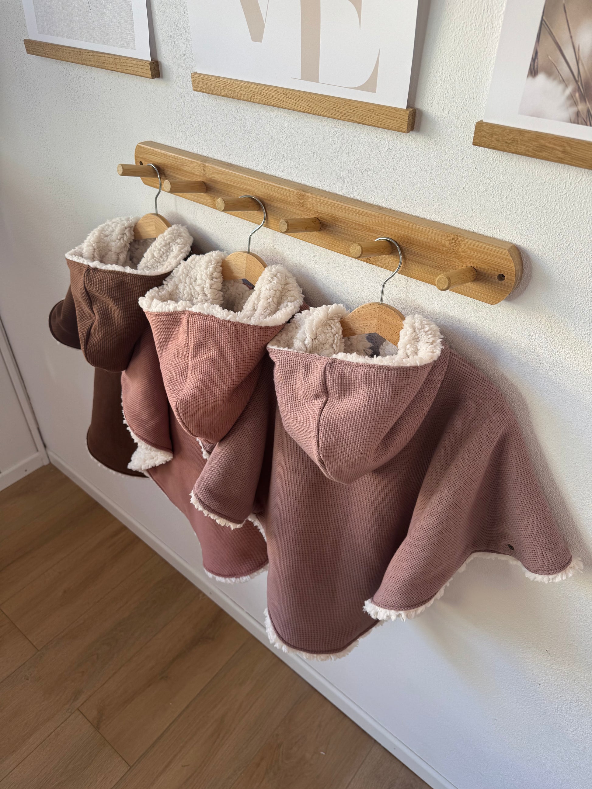 Disponible en 2 tailles ( tailles Grands) et deux saisons ! Le poncho hiver est cousu avec une polaire moumoute ultra chaude quant à la version légère ( printemps, automne ) il est lui cousu avec une polaire bien plus fine mais très douce pour le confort de vos enfants!